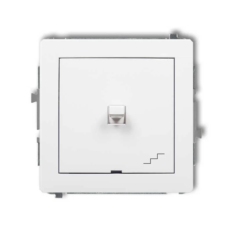 Włącznik schodowy w stylu amerykańskim DWPUS-3 serii DECO firmy KARLIK przeznaczony jest do montażu podtynkowego. Dostępny jest w różnych wersjach kolorystycznych i wyposażony został w piktogram schodów. Ramki uniwersalne oraz mechanizmy gniazd i łączników sprzedawane są osobno. Łączniki amerykańskie wystepują również w wersji podświetlanej (do tego należy dokupić moduł podświetlający). Wyłączniki w stylu amerykańskim nie występują w wersji hermetycznej i nie można zastosować uszczelniacza (U-1).