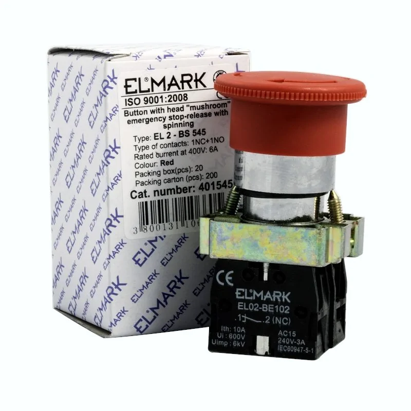 Grzybek bezpieczeństwa w kolorze czerwonym z rozmiarem otworu fi 22 to asortyment marki ELMARK. Przycisk awaryjny EL 2-BS 545 cechuje klasa odporności IP20. Dłoniowy przycisk grzybkowy z rodzajem styków NO+NC posiada dobrą odporność na zużycie mechaniczne oraz dostosowany jest do pracy z prądem znamionowym 6A ( 230 V). Jest to przycisk awaryjny z blokadą. Odblokowanie przycisku możliwe jest przez pokręcenie. Przycisk bezpieczeństwa dłoniowy znajdzie zastosowanie w zakładach pracy, magazynach czy liniach produkcyjnych. Guzik awaryjny przeznaczony jest do montażu w płytach o grubości do 4 mm