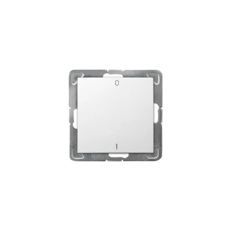 Włącznik dwubiegunowy serii IMPRESJA firmy OSPEL w kolorze białym, przeznaczony do montażu podtynkowego. Włącznik wymaga dokupienia ramki serii IMPRESJA firmy OSPEL.
