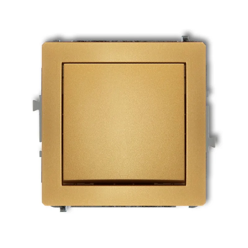 Łącznik jednobiegunowy 29DWP-1 z serii DECO firmy KARLIK wyposażony jest w 1 złoty klawisz - bez żadnych elementów graficznych. Łącznik 29DWP-1 wykonano w Polsce z wysokiej jakości materiałów z 5 letnią gwarancją. Posiada stopień ochrony na czynniki zewnętrzne oznaczony symbolem IP20. Istnieje możliwość zwiększenia szczelności produktu na stopień IP44 oraz podświetlenia modułu LED, po zamontowaniu specjalnych dodatków. Model mechanizmu włącznika sprzedawany bez ramki. Produkt spełnia normy PN-EN 60669-1:2006. Uwaga kolor złoty ( nie złoty metalik- oznaczenie 29).