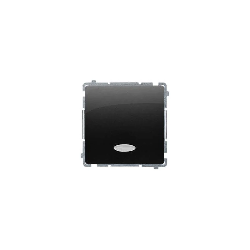 Wyłącznik jednobiegunowy z podświetleniem (moduł) 10AX, 250V serii Basic marki Kontakt-Simon z niebieskim podświetleniem led jest w kolorze czarny mat. Przeznaczony do montażu podtynkowego. Do włącznika należy dokupić ramkę instalacyjną serii Simon Basic.