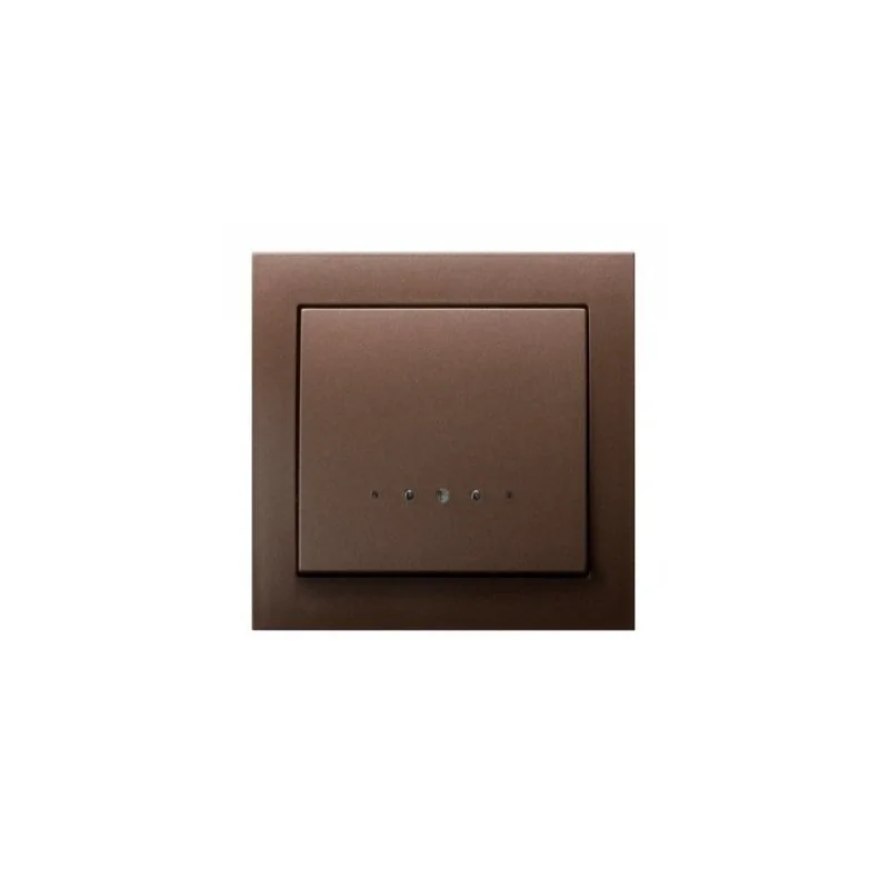 Jednobiegunowy włącznik w kolorze brązowym z podświetleniem serii KIER firmy OSPEL, przeznaczony do montażu podtynkowego. Włącznik posiada ramkę w komplecie.
