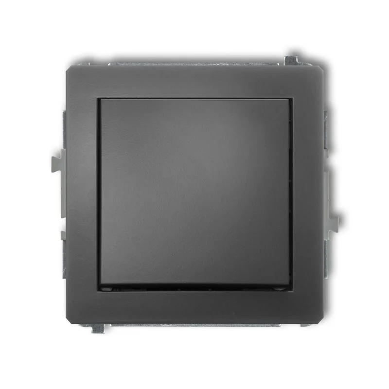 Jednobiegunowy włącznik serii DECO firmy KARLIK, przeznaczony do montażu podtynkowego w kolorze grafitowym. Włącznik wymaga dokupienia ramki serii DECO firmy KARLIK.