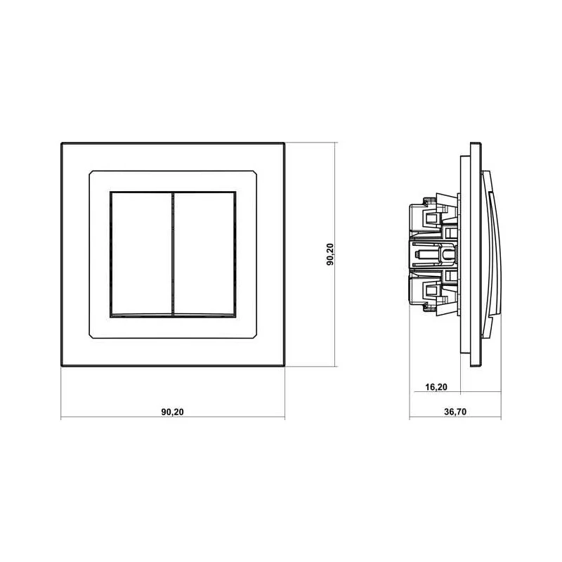 - Typ: włącznik jednobiegunowy+schodowy ze wspólnym zasilanie bez piktogramu
