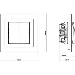 Łącznik jednobiegunowy ze schodowym 7DWP-10.1 wyposażony jest w dwa klawisze- jeden bez piktogramu, drugi z piktogramem schodów oraz posiada wspólne zasilanie. Produkt pełni złożoną funkcję 2 w 1. Prawy klawisz z piktogramem schodów to łącznik schodowy, a drugi przycisk to łącznik jednobiegunowy. Klawisz wytrzymuje obciążenia do 10 amperów przy włączaniu i wyłączaniu światła, bez sklejania styków. Istnieje możliwość dokupienia modułu podświetlającego lub uszczelniacza IP44. Włącznik jednobiegunowy ze schodowym przeznaczony jest od montażu podtynkowego i sprzedawany jest bez ramki w zestawie. Dostępne są ramki w krotnościach 1-5 w różnych kolorach. W ofercie znajdują się również ramki wypełniające- niweluje szczelinę pomiędzy ramką standardową, a ścianą (opcja dodatkowa) oraz pośrednie w bogatej kolorystyce, co pozwala na stworzenie własnej kompozycji.
