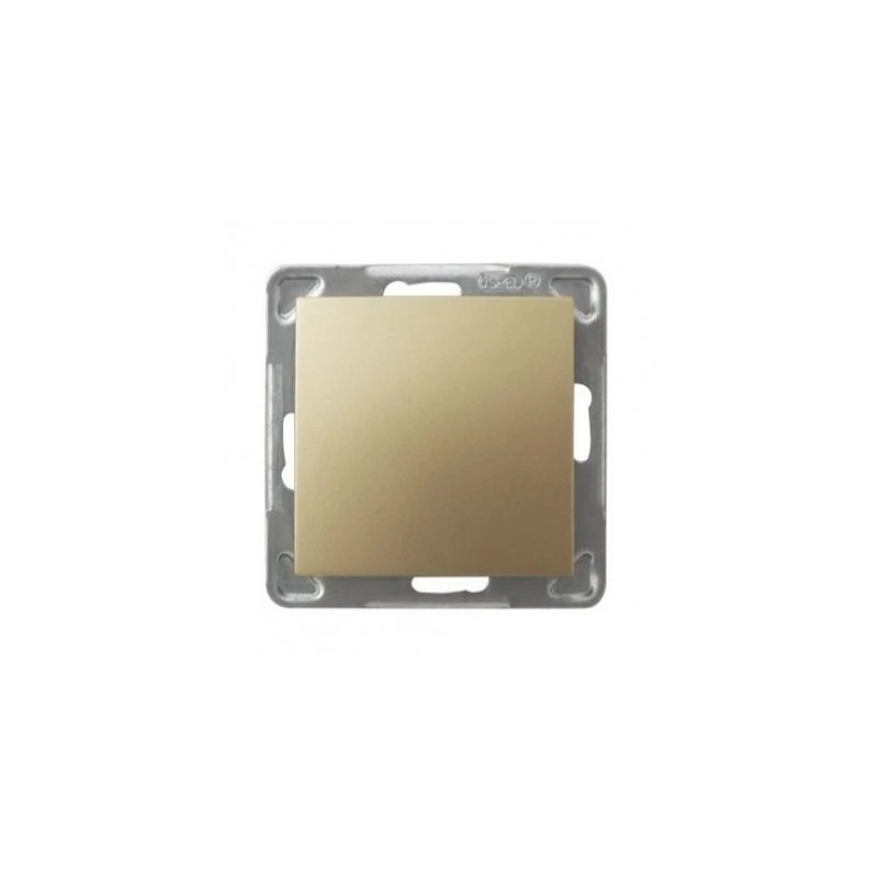 Jednobiegunowy włącznik w kolorze złotym serii IMPRESJA firmy OSPEL, przeznaczony do montażu podtynkowego. Włącznik wymaga dokupienia ramki serii IMPRESJA firmy OSPEL.
