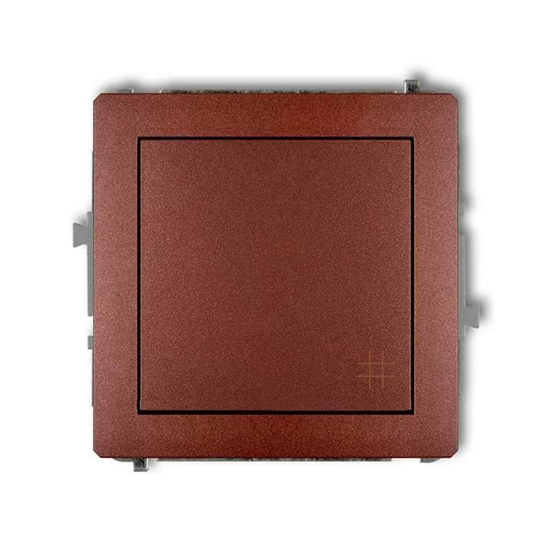 Włącznik krzyżowy w kolorze brązowym serii DECO firmy KARLIK, przeznaczony do montażu podtynkowego.Włącznik wymaga dokupienia ramki serii DECO firmy KARLIK.