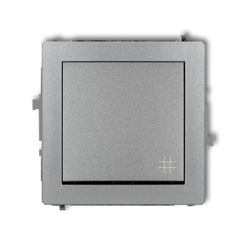 Łącznik krzyżowy 7DWP-6 z serii DECO w kolorze szarym, wyposażony jest w jeden klawisz z piktogramem. Stosowany jest w instalacji pomiędzy dwoma wyłącznikami np. schodowymi. Zapewnia on możliwość załączania światła w więcej niż dwóch punktach. Przykładem może być spocznik schodów lub większe pomieszczenia, gdzie mają być zastosowane więcej niż dwa wyłączniki schodowe. Łącznik krzyżowy 7DWP-6 przeznaczony jest do montażu podtynkowego. Zbudowany z wysokiej jakości tworzywa sztucznego ASA, odpornego na zarysowanie jak i działanie promieni słonecznych. Dzięki prostej konstrukcji włącznik 7DWP-6 bez problemu zamontujemy w puszcze. Przełącznik nie posiada w komplecie ramki, może być zamontowany w ramce pojedynczej lub modułowej w układzie pionowym bądź poziomym. Łącznik pochodzi z podtynowej serii DECO firmy KARLIK