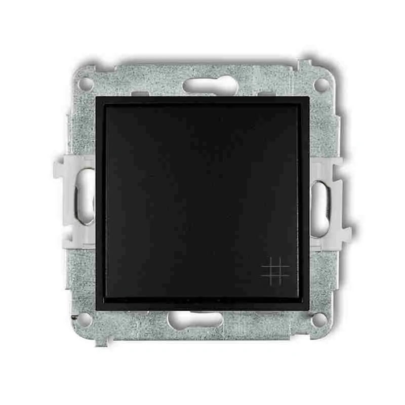 Włącznik krzyżowy serii DECO MINI firmy KARLIK w kolorze czarny mat przeznaczony do montażu podtynkowego. Przycisk wymaga dokupienia dużej ramki serii DECO MINI firmy KARLIK- ramki są uniwersalne w wersji od pojedynczej do pięciokrotnej. W zestawie z włącznikiem jest ramka pośrednia w kolorze obudowy. Osobno można dokupić ramkę pośrednią w kontrastowym kolorze. Do włącznika można dokupić zestaw podświetlający oraz uszczelnienie (uzyskanie klasy IP44). Sera Mini to najmniejsza i najbardziej kompaktowa seria gniazd i włączników dostępnych na polskim rynku. Wymiary ramki MINI to 80x80x6,2. Seria DECO MINI to produkt polski w szerokiej barwie kolorystycznej objęty 5 letnią gwarancją producenta.