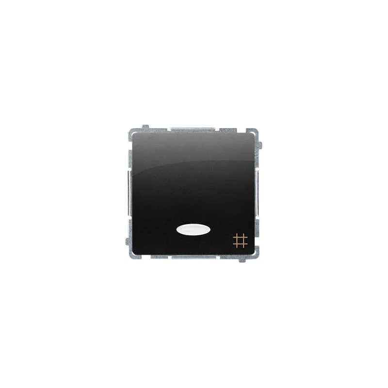 Wyłącznik krzyżowy BMW7L.01/49 serii Simon Basic marki Kontakt-Simon w kolorze czarny mat przeznaczony jest do montażu podtynkowego. Produkt posiada niebieskie podświetlenie oraz piktogram. Do wyłącznika należy dokupić ramkę instalacyjną serii Simon Basic.