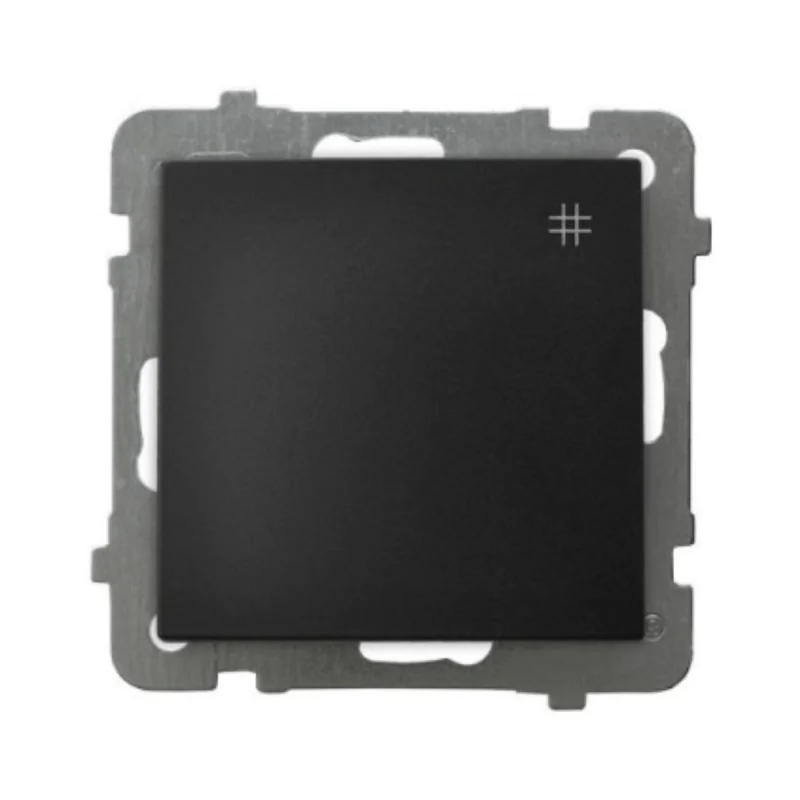 Włącznik krzyżowy AS OSPEL w eleganckim, czarnym kolorze, przeznaczony do montażu podtynkowego. Należy do serii AS marki OSPEL, łączącej nowoczesny design z wysoką jakością wykonania.