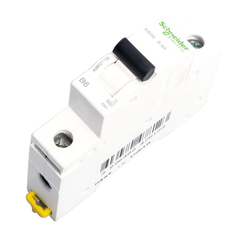 Wyłącznik nadprądowy marki Schneider Electric, to modułowy system zabezpieczający obwody oraz instalacje elektryczne przed skutkami przeciążeń i zwarć. Model A9K01106 to moduł bezpiecznika automatycznego wysokiej jakości, jednocześnie bardzo łatwy w instalacji. Wyłącznik dostosowany jest do najbardziej złożonych sieci i środowisk, zapewnia bezpieczeństwo podczas eksploatacji i konserwacji. Wyłącznik 1- biegunowy A9K01106, to element automatyki domowej o charakterystyce B, przeznaczony jest do obsługi napięcia znamionowego wynoszącego 230V i pracy z prądem znamionowym 6A. Bezpiecznik automatyczny montujemy do szyny DIN. Wybór Wyłacznika nadprądowego marki Schneider, to bezpieczne i innowacyjne rozwiązanie wśród dostępnych urządzeń modułowych na rynku urządzeń elektrycznych.