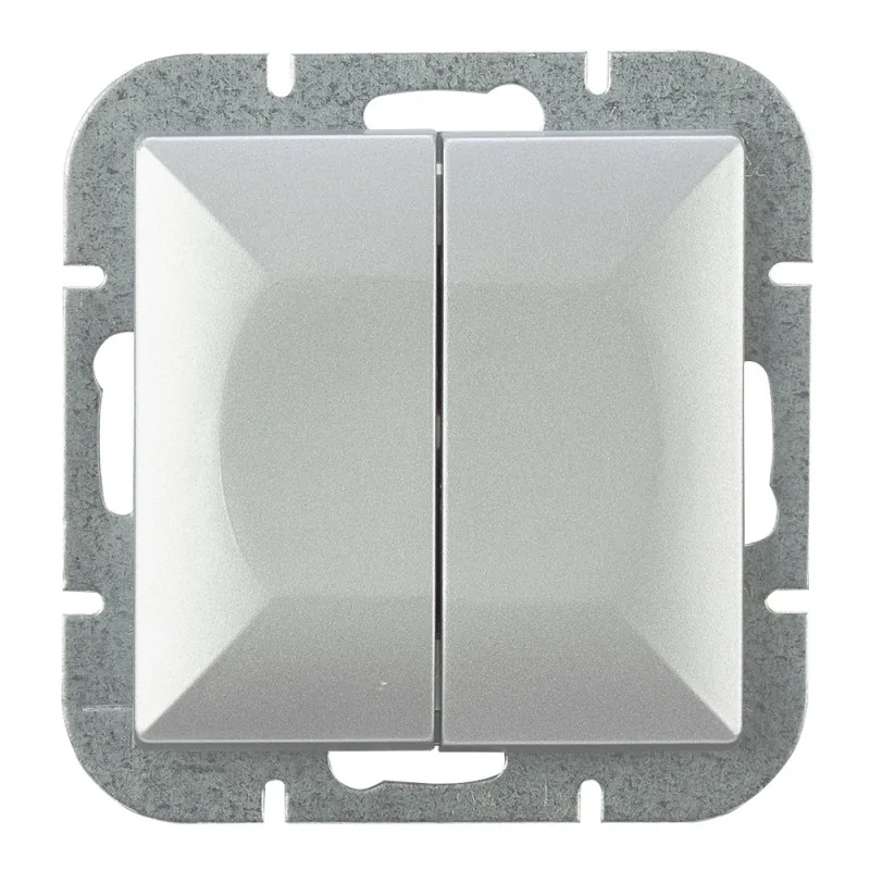 Podwójny włącznik schodowy WP-2/5P , seria Perła Abex. Do modułu łącznika należy dokupić ramkę z serii Perła. Kolor srebrny.