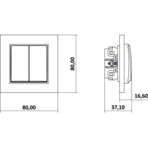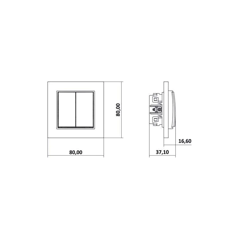 Włącznik sprzedawany jest bez ramki – należy dokupić ją osobno, wybierając model z tej samej serii i od tego samego producenta, aby zapewnić pełną kompatybilność i estetyczny wygląd instalacji.