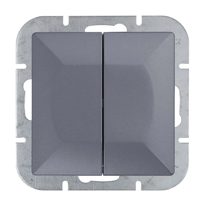 Podwójny włącznik światła WP-2P , seria Perła Abex. Do modułu łącznika świecznikowego, należy dokupić ramkę z serii Perła. Kolor antracyt.