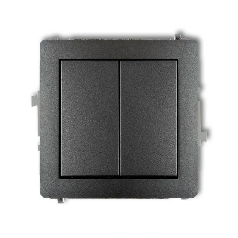 Mechanizm włącznika świecznikowego serii DECO firmy KARLIK w kolorze grafitowym, przeznaczony do montażu podtynkowego. Włącznik wymaga dokupienia ramki serii DECO firmy KARLIK.