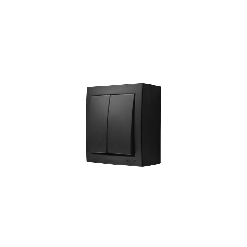 Włącznik podwójny bryzgoszczelny IP44, natynkowy, 10AX, 250V, zaciski śrubowe; czarny mat, podświetlenie białe