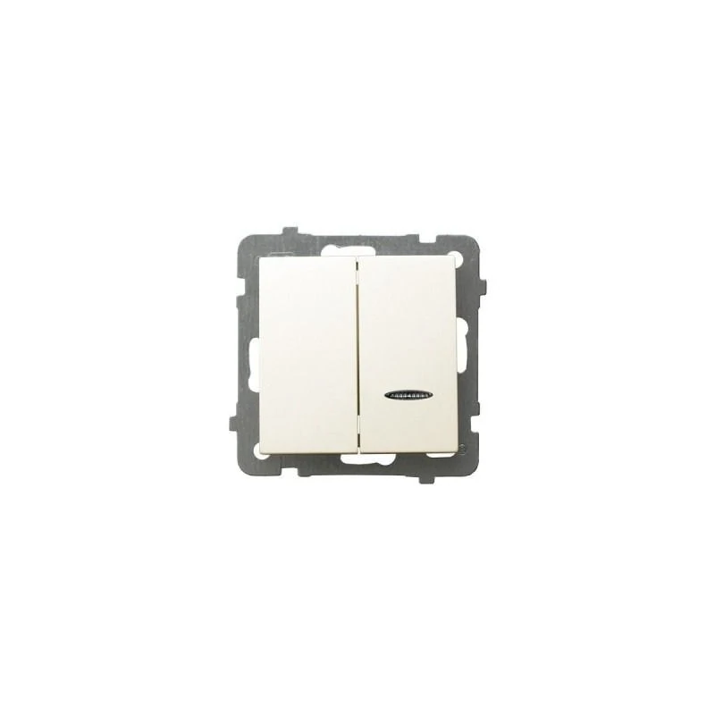 Podwójny włącznik świecznikowy w kolorze ECRU serii AS firmy OSPEL, przeznaczony do montażu podtynkowego. Włącznik wymaga dokupienia ramki serii AS firmy OSPEL.