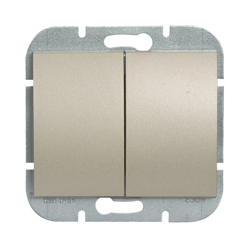 Wyłącznik podwójny świecznikowu z modułowej serii ONYX. Do włącznika pasują ramki z serii ONYX. Kolor satynowy.