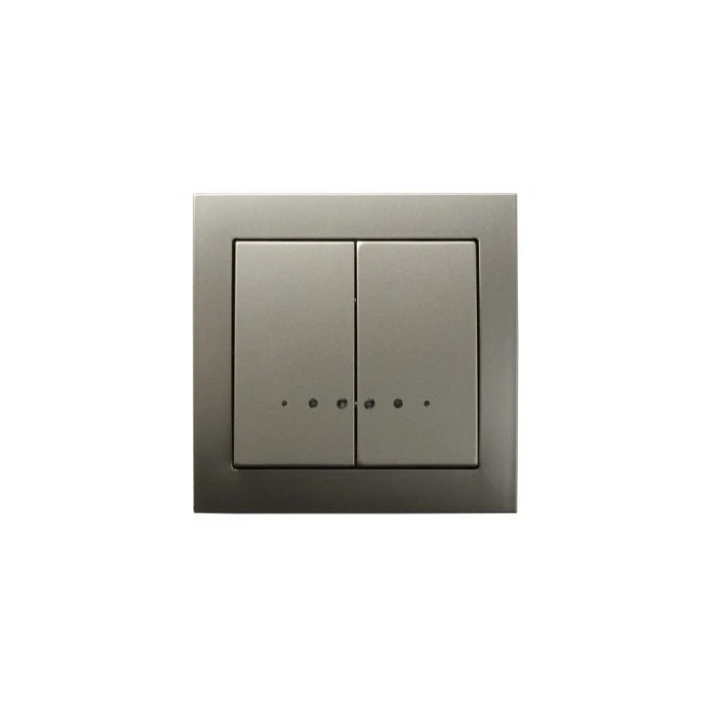 Podwójny włącznik z podświetleniem serii KIER firmy OSPEL w kolorze satynowym, przeznaczony do montażu podtynkowego. Włącznik posiada ramkę w komplecie.