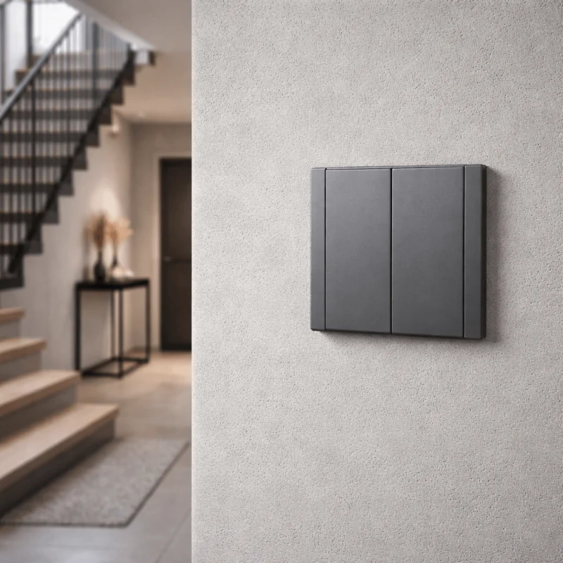 Nowa linia premium włączników i gniazd podtynkowych, łącząca elegancki design z wysoką jakością materiałów i bezpieczeństwem użytkowania. Smukła, minimalistyczna konstrukcja oraz precyzyjne wykończenie zapewniają komfort, trwałość i estetykę w każdym wnętrzu. Włącznik świecznikowy posiada ramkę pojedynczą w zestawie i przeznaczone jest do montażu w standardowej puszcze fi 60mm. Włącznik dwuklawiszowy tzw. świecznikowy, przeznaczony do załączania i wyłączania obwodów w instalacjach niskiego napięcia, np. w instalacjach oświetleniowych. Wyposażony w podwójny klawisz, umożliwia niezależne sterowanie dwoma obwodami.