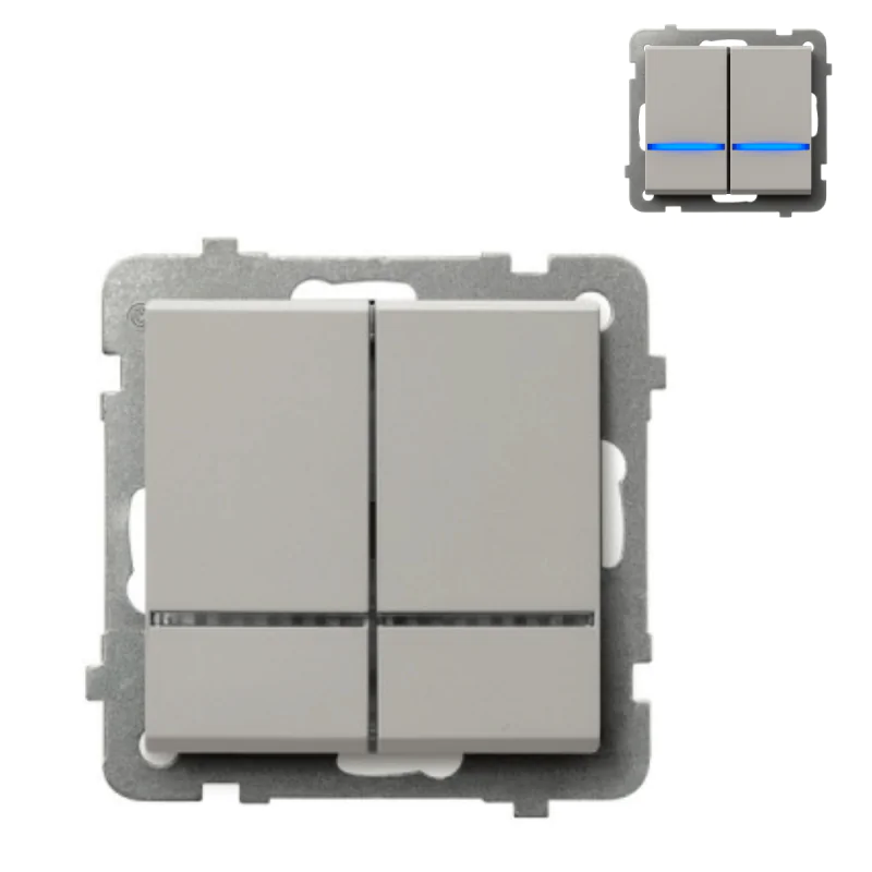 Włącznik podwójny klasyczny z podświetleniem Sonata Ospel w kolorze Kaszmir to stylowy element osprzętu elektrycznego przystosowany do montażu podtynkowego w ramkach z tej samej serii. Subtelny, kaszmirowy odcień idealnie pasuje zarówno do nowoczesnych, jak i klasycznych wnętrz, dodając im ciepła i wyrafinowania.