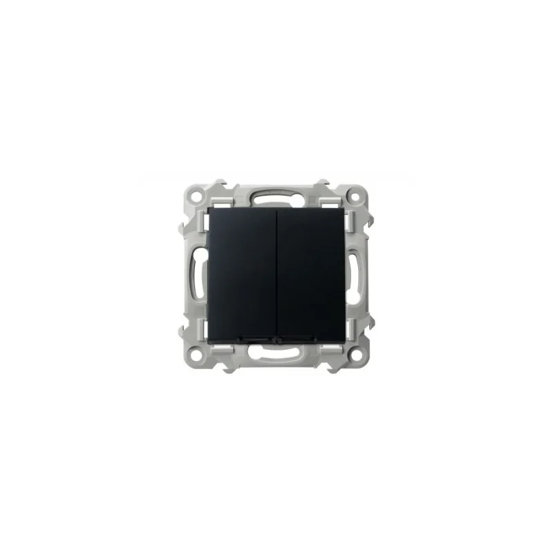 Włącznik podwójny z podświetleniem serii SZAFIR marki OSPEL przeznaczony jest do montażu podtynkowego. Czarny wyłącznik świecznikowy wyposażony jest w dwa klawisze. Do prawidłowego montażu należy osobno dokupić ramkę instalacyjnej serii SZAFIR firmy OSPEL.