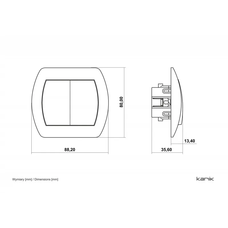 Klasyczny przełącznik podwójny do światła serii TREND marki KARLIK przeznaczony do montażu podtynkowego. Włącznik świecznikowy w kolorze beżowym wyposażony został w podświetlenie i sprzedawany jest bez ramki w zestawie. Do prawidłowego montażu należy osobno dokupić ramkę tej samej serii i firmy.