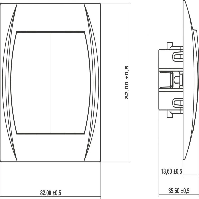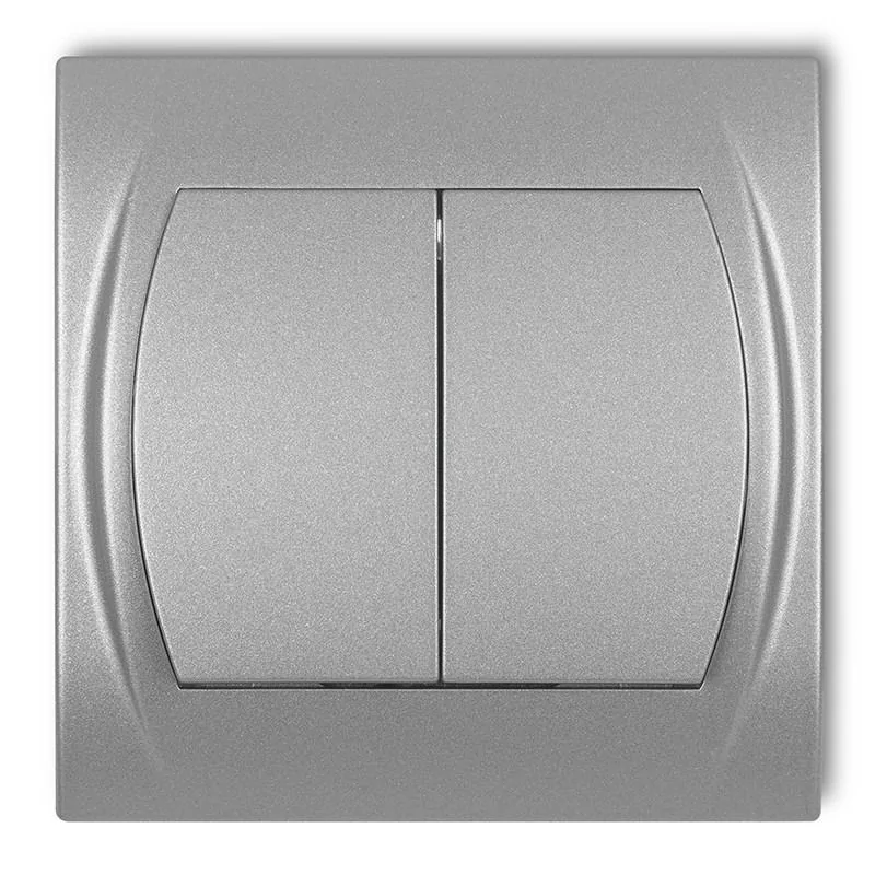 Włącznik świecznikowy 7LWP-2 serii LOGO firmy KARLIK przeznaczony jest do montażu podtynkowego. Łącznik podwójny posiada dwa klawisze oraz sprzedawany jest z ramką w zestawie. Srebrny metaliczny kolor wyłącznika świecznikowego sprawia, że doskonale prezentuje się na ścianie. W ofercie Karlika dostępne są również inne włączniki w różnych kolorach, które dopasujesz do swojego gustu. Włącznik podwójny szary metaliczny doskonale spisze się np. w salonie.