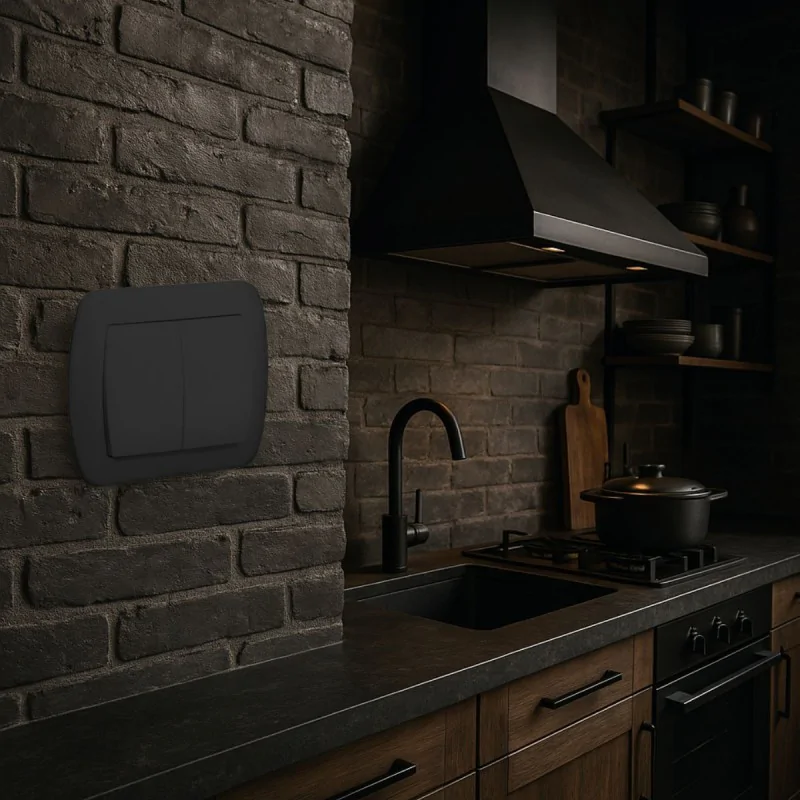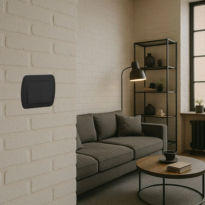 Łącznik schodowy podwójny 10AX, 250V, zaciski śrubowe; czarny mat