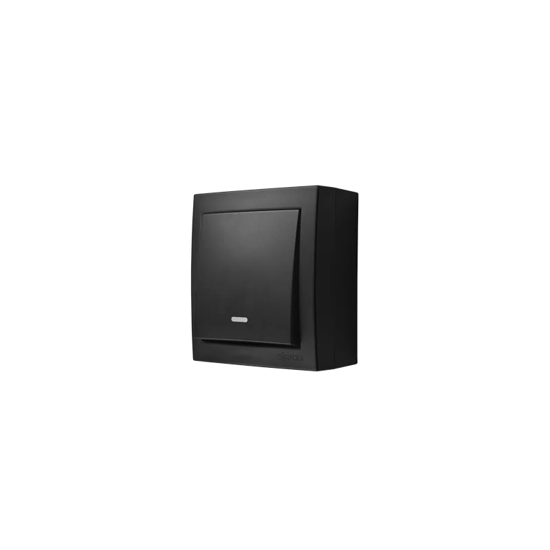 Włącznik schodowy bryzgoszczelny IP44, natynkowy, 16A, 250V, szybkozłącza; czarny, podświetlenie białe, bez piktogramu