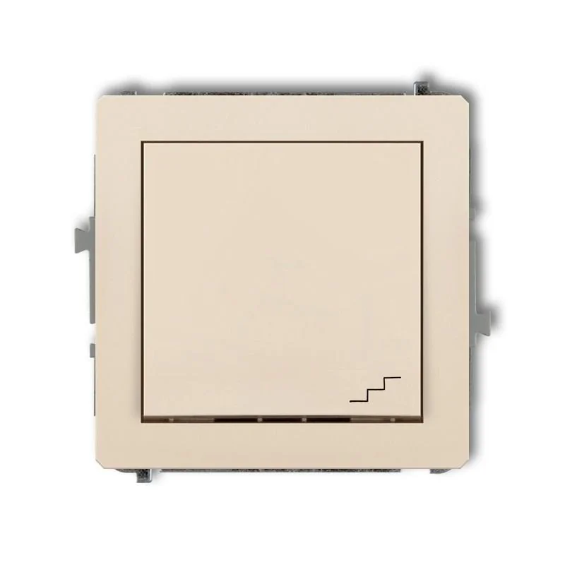 Włącznik schodowy pojedynczy koloru beżowego serii DECO firmy KARLIK, przeznaczony do montażu podtynkowego. Włącznik wymaga dokupienia ramki serii DECO firmy KARLIK.