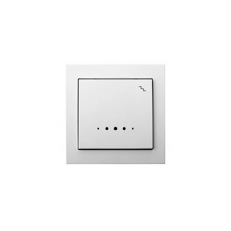 Łącznik schodowy biały z podświetleniem ŁP-3WS/00 z jednym klawiszem. Włącznik stosowany jest do montażu na klatkach schodowych , długich korytarzach czy innych ciągach komunikacyjnych w pomieszczeniach. Mechanizm łącznika schodowego należy montować w parach np. na górze i na dole schodów. Posiada piktogram oraz podświetlenie w kolorze pomarańczowym na froncie klawisza, dzięki któremu łatwiej zlokalizować go w ciemności. Włącznik schodowy przeznaczony jest do montażu podtynkowego. Dzięki prostej konstrukcji zacisków z gwintami mechanizm łącznika z łatwością zamontujesz w puszce.