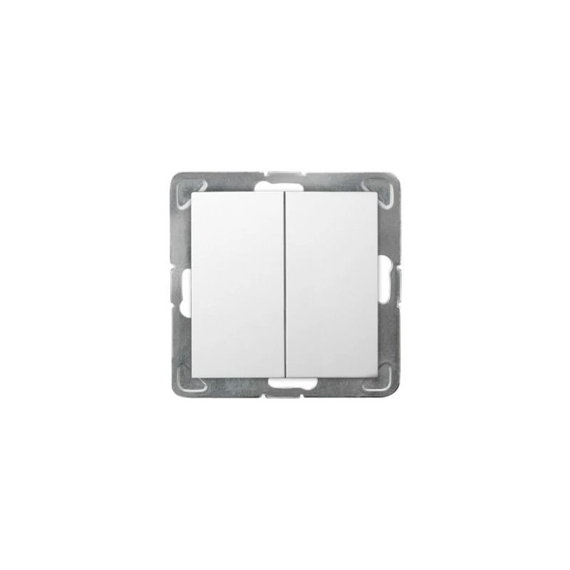 Włącznik schodowy i jednobiegunowy w kolorze białym serii IMPRESJA firmy OSPEL; sposób montaż: podtynkowy. Włącznik wymaga dokupienia ramki serii IMPRESJA firmy OSPEL.