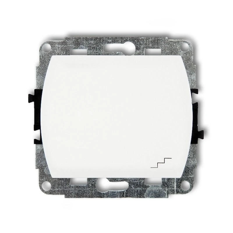 Łącznik schodowy bezramkowy biały WP-3 z jednym klawiszem. Produkt przeznaczony do montażu na schodach, długich korytarzach czy innych ciągach komunikacyjnych w pomieszczeniach. Mechanizm łącznika schodowego należy montować w parach np. na górze i na dole schodów. Włącznik schodowy przeznaczony jest do montażu podtynkowego. Dzięki prostej konstrukcji zacisków z gwintami mechanizm łącznika z łatwością zamontujesz w puszce. Wyłącznik klatkowy firmy Karlik nie posiada w komplecie ramki, może być zamontowany w ramce pojedynczej lub modułowej w układzie pionowym bądź poziomym.