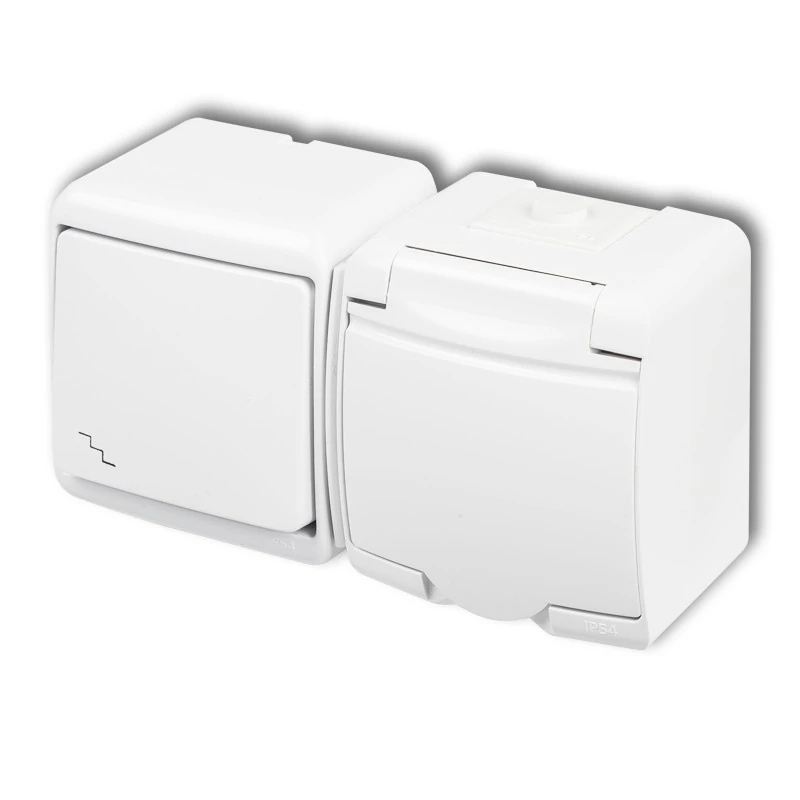 Zestaw WGHH-3s to mix elementów elektroinstalacyjnych łączących w sobie gniazdko elektrycznego z uziemieniem typu schuko i klapką w kolorze obudowy oraz łącznik schodowy z jednym klawiszem. WGHH-3s to biała wersja kolorystyczna. Podobne zestawienia występują też w wersji brązowej, grafitowej bądź popielatej. Połączenie osprzętu w linii poziomej w kolejności: wyłącznik - kontakt ułatwia montaż i organizację pracy oraz wpływa na estetykę wyglądu ścian z instalacją. Gniazdo w komplecie Wersja WGHH-3s z uziemieniem nie posiada przesłony styków. Wyłącznik klatkowy pozwala na włączanie i wyłączanie światła z dwóch rożnych miejsc np. na klatce, korytarzu czy dużej sali lub hali. Komplet pochodzi z hermetycznej linii JUNIOR przeznaczonej do montażu natynkowego zarówno w domach, jak i w zastosowaniach przemysłowych. Gniazdo posiada uziemienie typu schuko - bolec na dole.