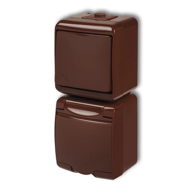 Brązowy włącznik schodowy z gniazdem hermetycznym 4WGHP-3 JUNIOR KARLIK