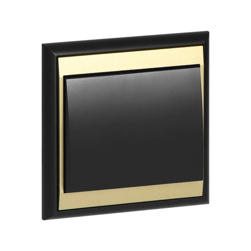Czarny włącznik krzyżowy z ramką matowy ze złotą wstawką WP-8L LUNA ABEX