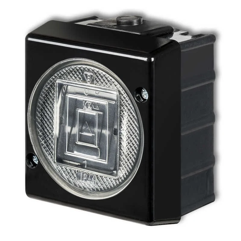 Włącznik schodowy 112WHS-3 serii Senior firmy KARLIK jest w kolorze czarnym i posiada pojedynczy klawisz. Produkty serii SENIOR mogą być stosowane w miejscach, w których występuje duże ryzyko przenikania wody i trudno zachować czystość np. garaż, piwnica, magazyn, taras. Włącznik schodowy zapewnia ochronę przed bryzgami wody z dowolnego kierunku, lecz nie może być wystawiony na działanie strug wody.