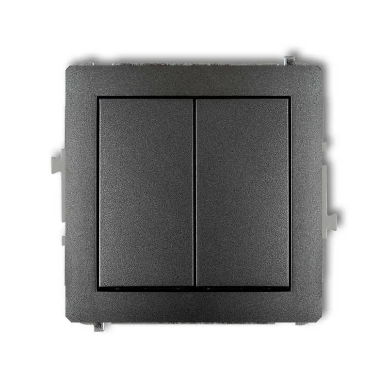 Włącznik schodowy 11DWP-33.1 serii DECO firmy KARLIK jest w kolorze grafitowym i został przeznacZony do montażu podtynkowego. Do włącznika podwójnego schodowego należy dokupić ramkę pojedynczą serii Deco firmy Karlik. Podwójny włącznik schodowy nie posiada piktogramów schodów. Łączniki DECO występują również w wersji hermetycznej (IP44) - do wybranego łącznika DECO należy kupić osobno uszczelniacz. Do włącznika podwójnego schodowego nie można dokupić modułu podświetlającego.