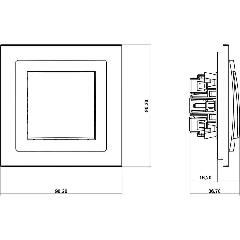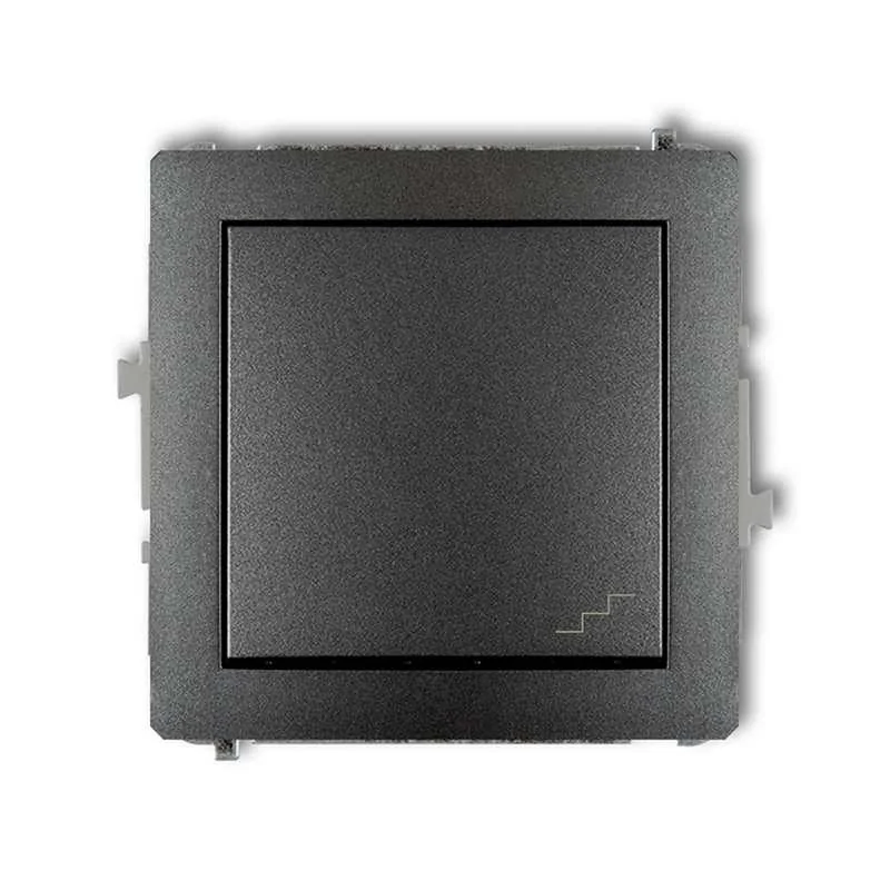 Włącznik schodowy pojedynczy w kolorze grafitowym serii DECO firmy KARLIK, przeznaczony do montażu podtynkowego. Włącznik wymaga dokupienia ramki serii DECO firmy KARLIK.