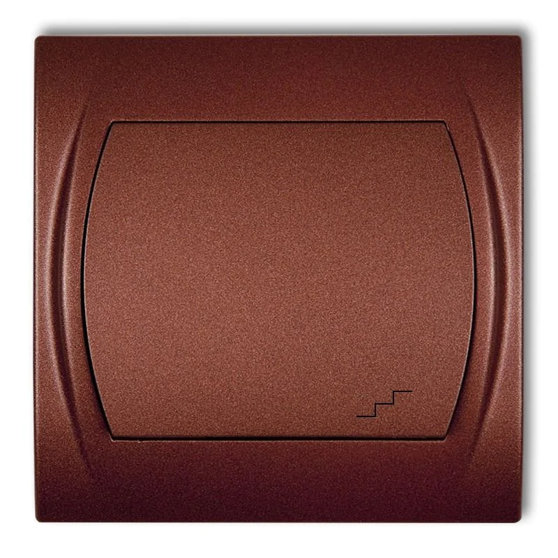 Łącznik schodowy 9LWP-3 serii LOGO firmy KARLIK przeznaczony do montażu podtynkowego, sprzedawany jest wraz z pojedynczą ramką w komplecie (monoblok). Schodowy włącznik jest w kolorze brązowym metalicznym oraz przeznaczony jest do użytku wewnętrznego. Włącznik schodowy jest wyposażony w jeden klawisz, na którym znajduje się piktogram w postaci schodów. Włącznik schodowy 9LWP-3 wykonany jest z wysokiej jakości, odpornego na zarysowania materiału.
