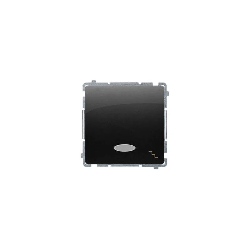 Wyłącznik schodowy LED z niebieskim podświetleniem serii Simon Basic marki Kontakt-Simon w kolorze czarny mat, przeznaczony do montażu podtynkowego. Do włącznika należy dokupić ramkę instalacyjną serii Simon Basic. Produkt posiada piktogram schodów.