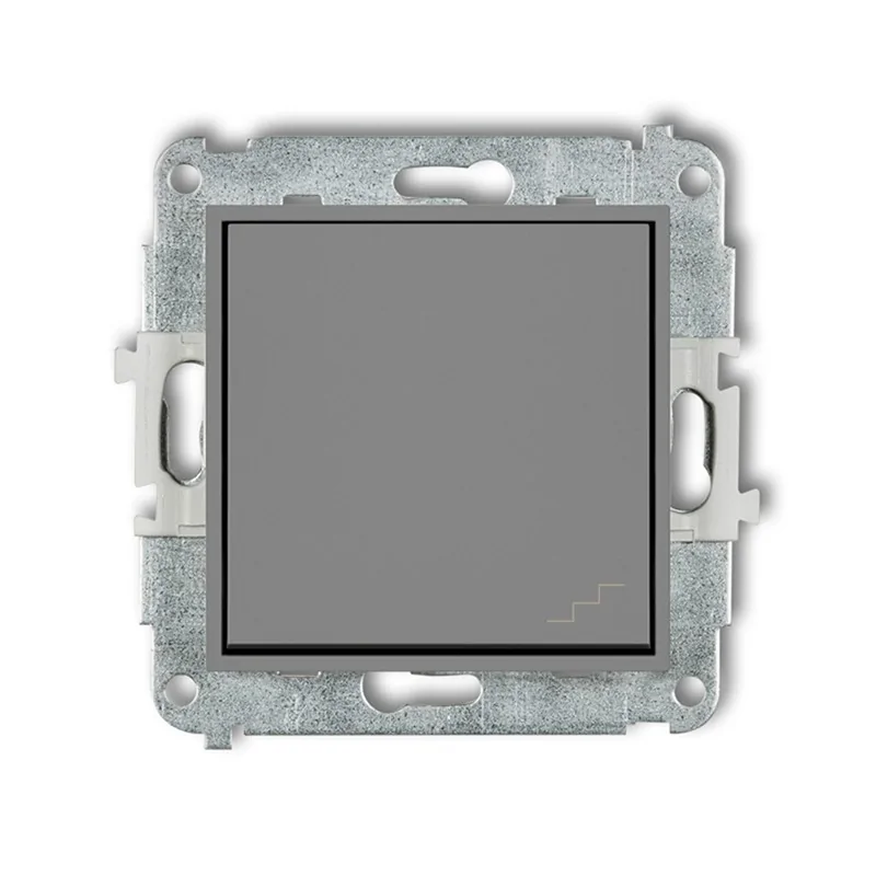 Włącznik schodowy 27MWP-3 serii Deco Mini firmy Karlik sprzedawany jest bez ramki w zestawie i jest w kolorze szarego matu. Ramki serii Mini to najmniejsze, dostępne na polskim rynku produkty tego typu. Włącznik schodowy pojedynczy sprzedawany jest z ramką pośrednią w tym samym kolorze. Ramki pośrednie w innym kolorze niż kolor mechanizmu można kupić osobno. Do włącznika należy dokupić ramkę pojedynczą serii Deco Mini marki Karlik, która dostępna jest w różnych wersjach kolorystycznych. Włączniki serii DECO Mini występują również w wersji podświetlanej. Do włącznika należy dokupić dostępny moduł podświetlający. Włączniki serii Mini występują również w wersji hermetycznej- należy dokupić osobno uszczelniacz.