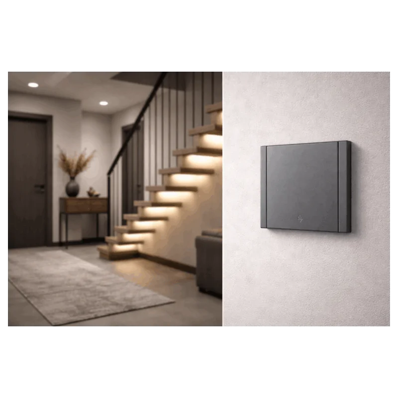 Nowa linia premium włączników i gniazd podtynkowych, łącząca elegancki design z wysoką jakością materiałów i bezpieczeństwem użytkowania. Smukła, minimalistyczna konstrukcja oraz precyzyjne wykończenie zapewniają komfort, trwałość i estetykę w każdym wnętrzu. Włącznik schodowy posiada ramkę pojedynczą w zestawie i przeznaczone jest do montażu w standardowej puszcze fi 60mm. System ramkowy umożliwia montaż od 1 do 3 modułów w układzie poziomym, co daje dużą swobodę projektowania. Modny szary kolor pasuje do wielu nowoczesnych aranżacji.