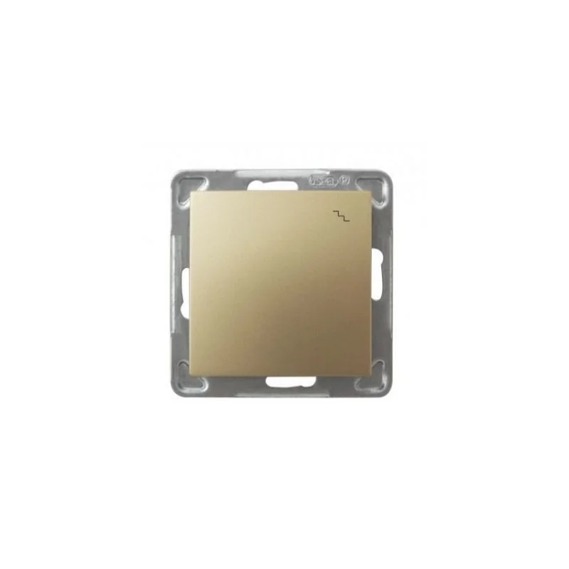 Włącznik schodowy w kolorze złotym serii IMPRESJA firmy OSPEL, przeznaczone do montażu podtynkowego. Włącznik wymaga do kupienia ramki serii IMPRESJA firmy OSPEL.