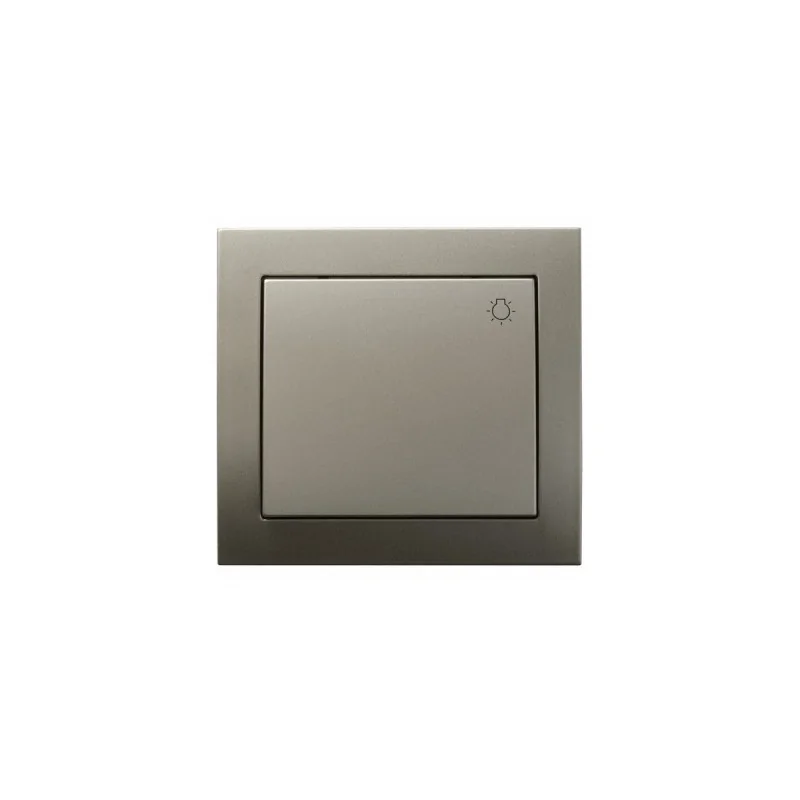 Satynowy włącznik dzwonkowy ŁP-5W/00 z serii KIER to łącznik instalacyjny zwierny, z odbijającym klawiszem, na którym w górnym rogu widnieje logo żarówki. Włącznik w komplecie z ramką. Produkt nowy polski z gwarancją do 5 lat.