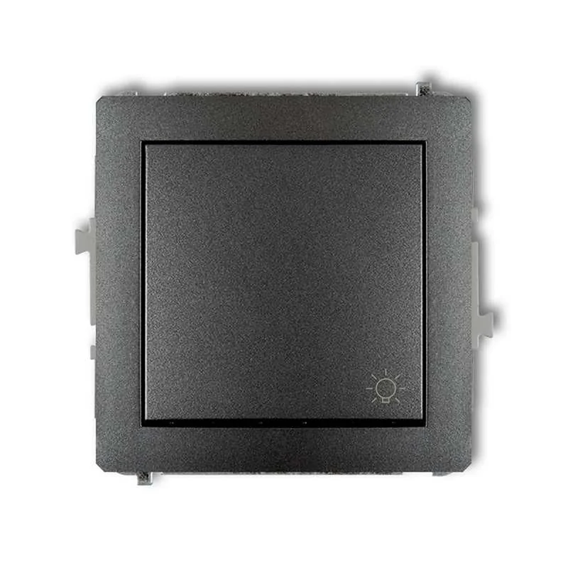 Mechanizm włącznika światło zwierne w kolorze grafitowym, przeznaczone do montażu podtynkowego, serii DECO firmy KARLIK. Mechanizm wymaga dokupienia ramki serii DECO firmy KARLIK.