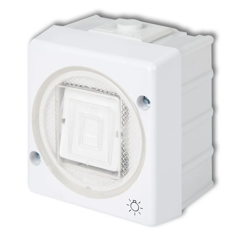Przycisk światło biały IP44 serii SENIOR może być stosowany wszędzie tam, gdzie jest ryzyko przenikania wody jest duże i trudno o zachowanie pełnej czystości. Przycisk dzwonkowy WHS-5 to łącznik hermetyczny o stopniu ochrony IP44. Przycisk WHS-5 charakteryzuje się eleganckim białym kolorem, pasującym praktycznie do każdego pomieszczenia. Urządzenie wykonano z trwałych materiałów, dzięki czemu jego użytkowanie możliwe jest bez zmiany wyglądu przez długie lata. Montaż przycisku jest niezwykle łatwy i intuicyjny. Łącznik posiada piktogram żarówki w prawym dolnym rogu.