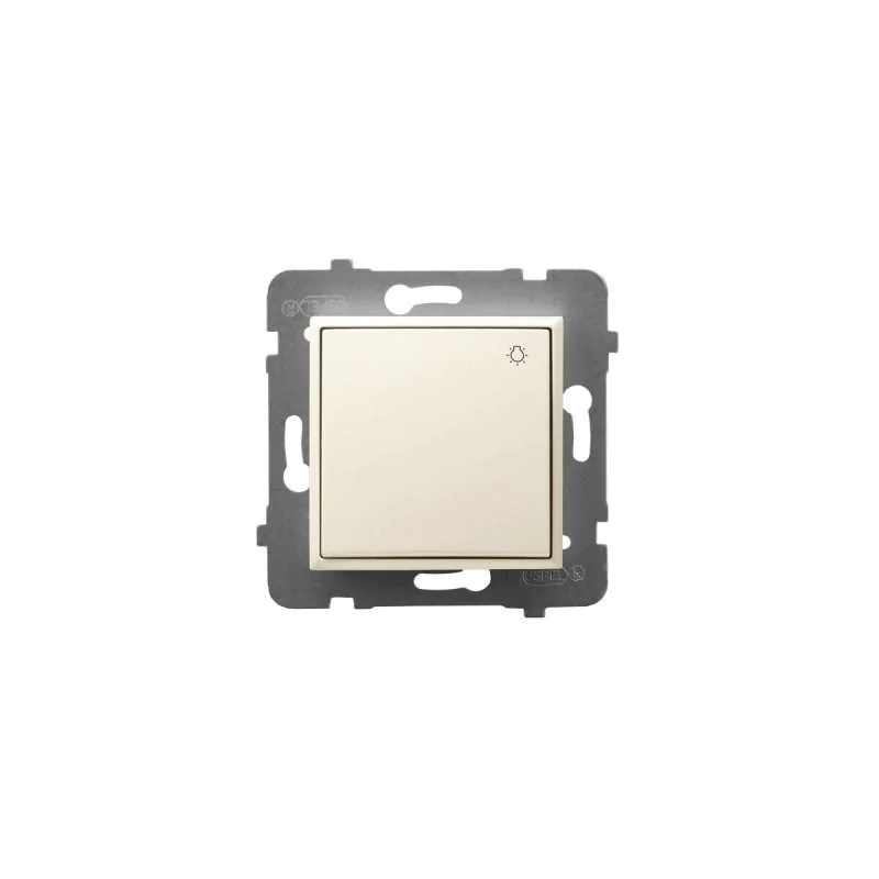 Łącznik zwierny światło ŁP-5U/m/27 w kolorze ECRU serii ARIA firmy OSPEL przeznaczony jest do montażu podtynkowego oraz wymaga dokupienia ramki serii ARIA firmy OSPEL. Wyłącznik typu światło zwierne posiada sprężynkę, która odbija po jego naciśnieciu. Włącznik zwierny ŁP-5U/m/27 jest wyposażony w jeden klawisz, na którym znajduje się piktogram światła. Włącznik swierny światło posiada stopień odporności IP20.
